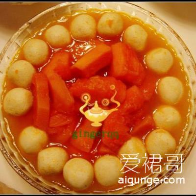 木瓜鱼蛋 木瓜鱼蛋的材料 主料:1,木瓜约300克,2,四海鱼蛋一包170克,配...